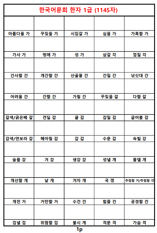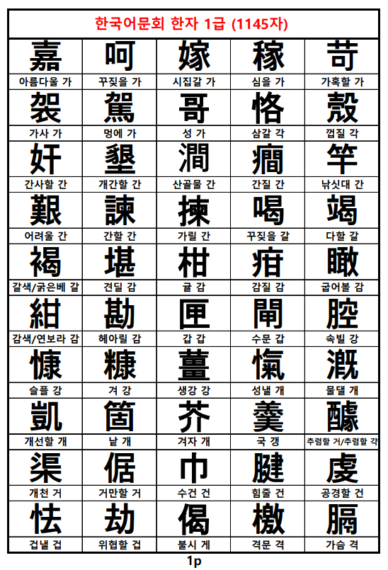 한국어문회 한자 1급 (1145자).pdf