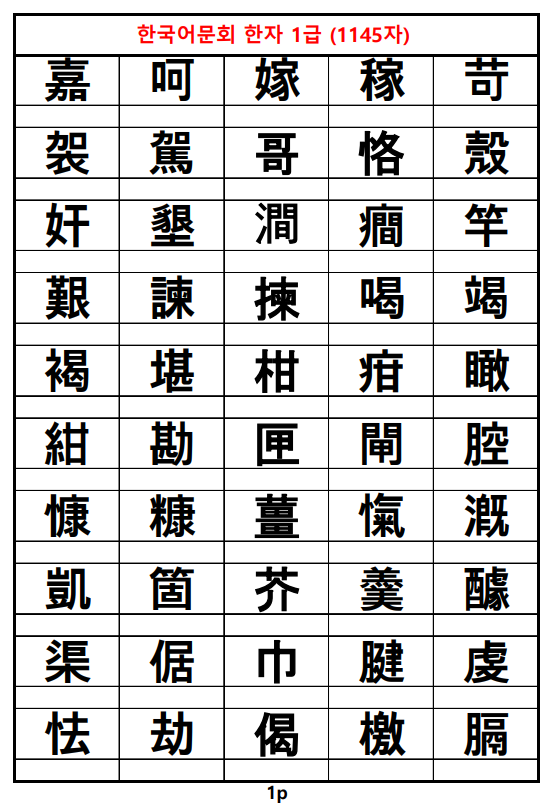 한국어문회 한자 1급 (1145자)한자쓰기.pdf